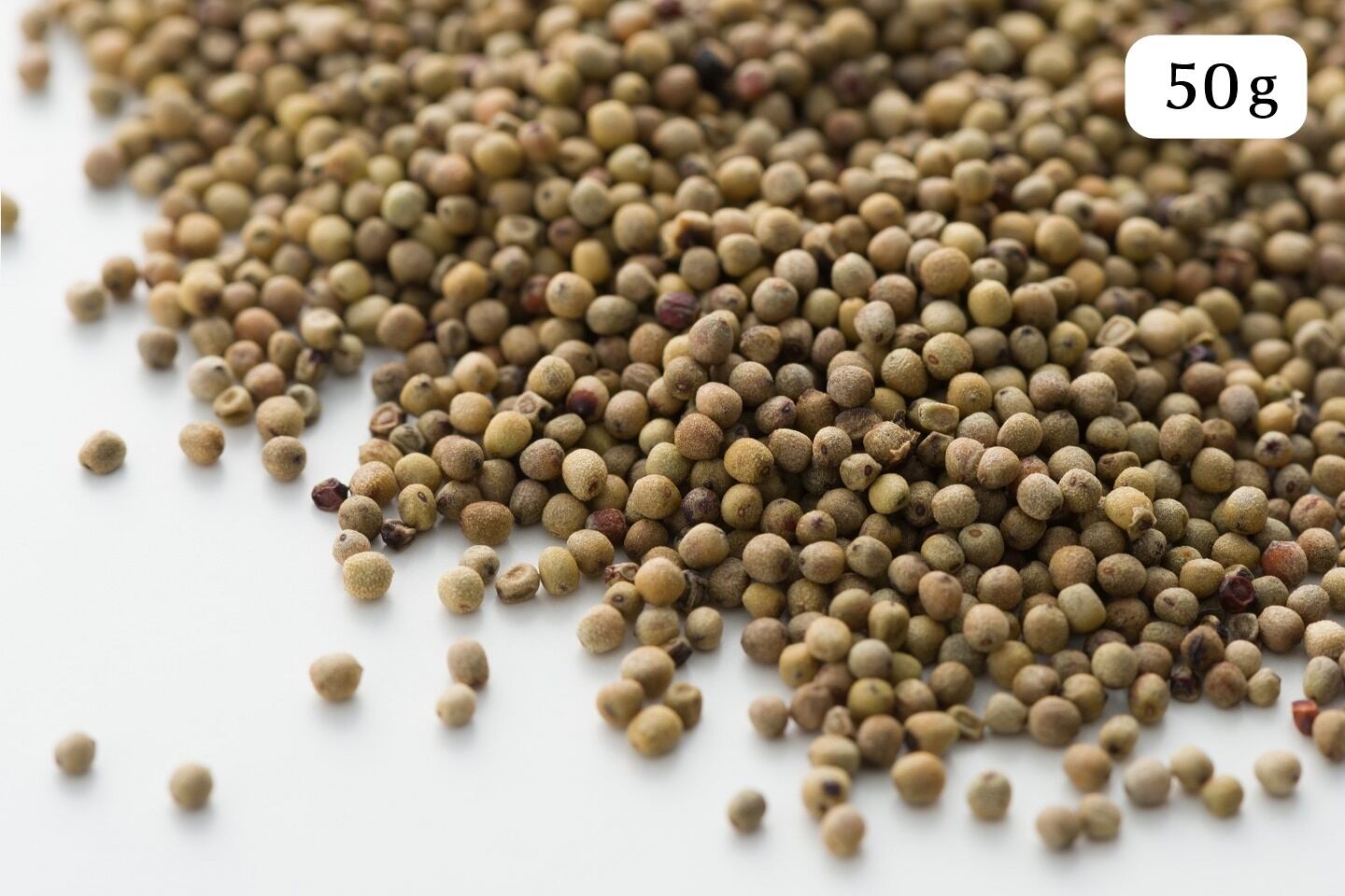 Pearls of Pepperと名付けれられたこの胡椒は、長胡椒からとれる ”世界で一番小さい胡椒”です。1粒はわずかポピーシードほどの大きさ。完熟した長胡椒の房から小さな種だけを丁寧に取り出し、天日乾燥させたものです。アニスやシナモンに似た甘くスパイシーな香りとマイルドな辛さがあります。大変貴重で珍しい胡椒のため、ほとんど流通がありません。料理の仕上げや、サラダドレッシング、ミックススパイス等に小粒のまま使用できます。そのほか、胡椒の代わりにどんなお料理にもお使いいただけます。